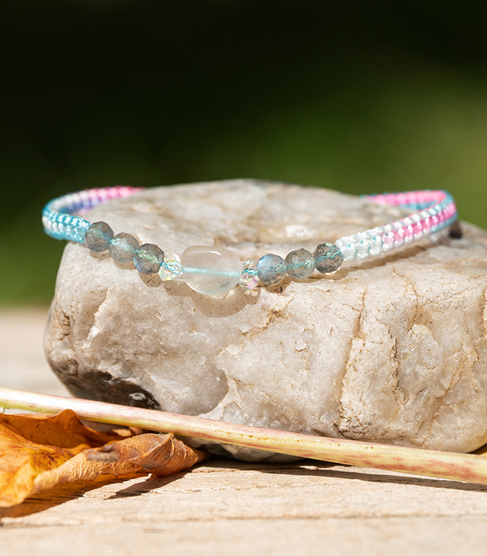 Minerální Shamballa náramek s fluoritem a labradoritem – elegantní a energeticky silná kombinace kamenů, která podporuje jasnou mysl, intuici a vnitřní rovnováhu.
