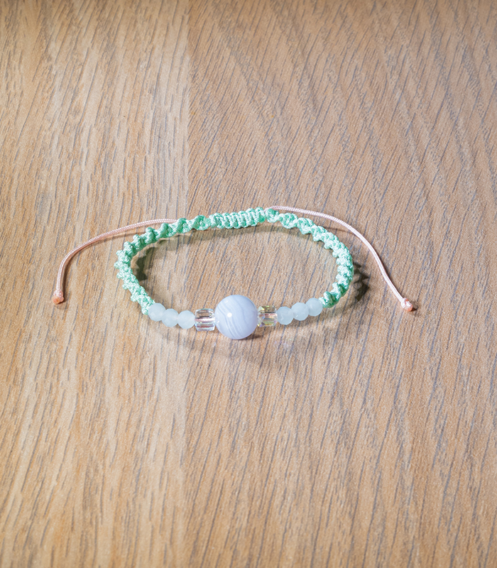 Minerální Shamballa náramek s chalcedonem – jemný a harmonizující šperk, který podporuje klid, rovnováhu a pozitivní komunikaci.